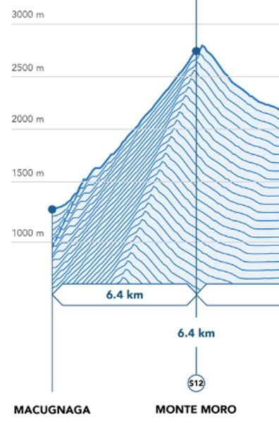 Höjdmeter är det jag lär behöva på UTMR och det sägs ju att man blir bra på det man tränar. Under de 4 månader som gått sedan anmälan har jag fokuserat nästan helt på att samla höjdmeter och nu måste det bli ännu mera framöver. De 17 milen runt Monte Rosa har 13300 höjdmeter, upp och lika mycket ned, det ger en snittlutning på 16%.