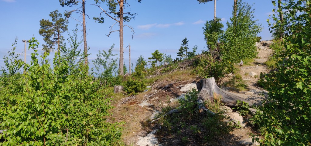 1,5 km spikrak ganska teknisk stig från sjö till topp, 150 höjdmeter med löpvänlig lutning