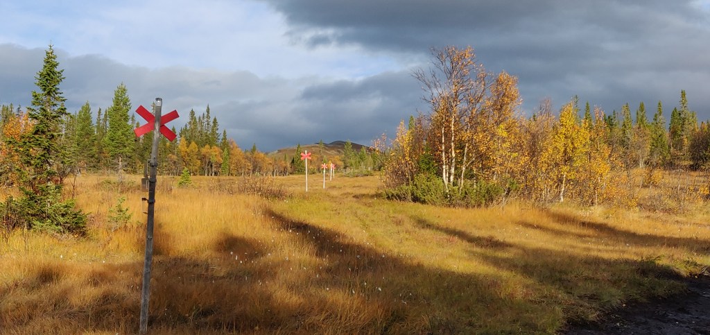 På eftermiddagen på väg ned mot Vålådalen var det en hel del folk ute och njöt i solen, men bortom raststugan på fjället såg jag bara en enda person, en kille som var ute med sin hund och en färgbytt för att bättra på de orange ledprickarna. Jag såg bara en enda ren på hela dagen, det kändes som att den blivit ”kvarglömd” efter att alla samlats in för renskiljning och eventuell slakt.
