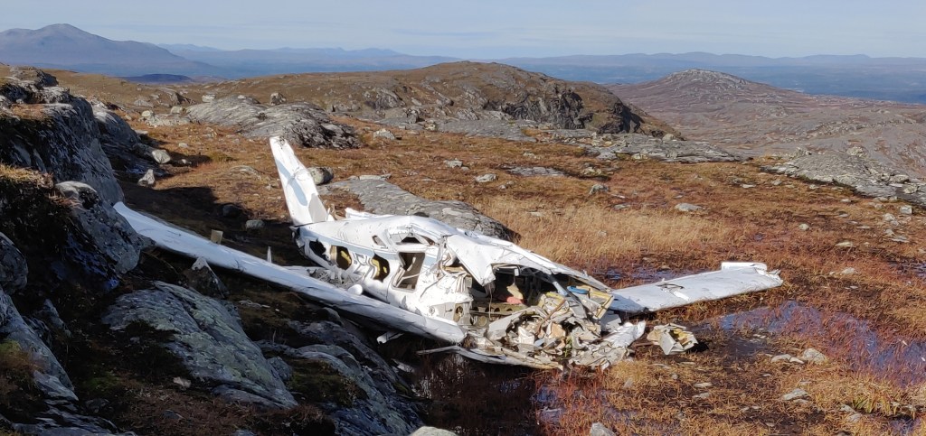 Jag visste inte vad det skulle vara men hade förväntat mig mest en rostig skrothög, det var långt därifrån. Trots att olyckan inträffade 1966, för 57 år sedan, såg det ut som om det skulle varit nyss. Folk har under åren plockat ihop delarna och placerat dem hjälpligt på plats så det ser ut som ett flygplan igen och aluminiumskrovet är helt opåverkat av 57 år på fjället. En märklig och tragisk plats där de 2 piloterna omkom.
