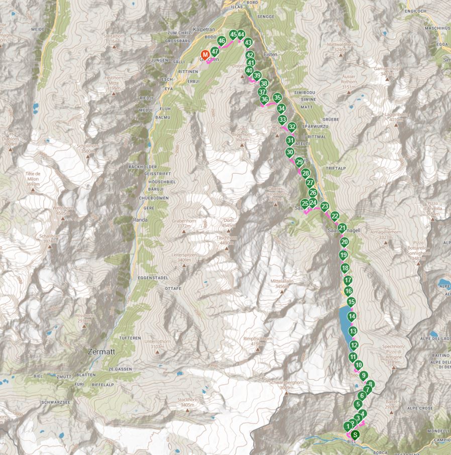Macugnaga – Grächen: 46,0 km med 2800 höjdmeter