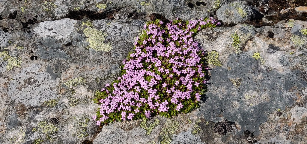 Uppe ur skogen var det dags att lämna leden med sikte på Lill-Anjeskutan. En hyfsat flack stigning utmed bergsryggen och underlaget var lättframkomligt med mestadels gräs, mossa och berghällar.