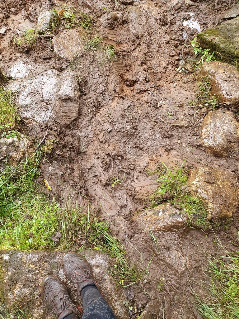 Till slut, efter 20 km var i varje fall stenen slut, då blev det lera på heltid. Det som kunde varit fina stigar lätt utför, på ”flowing trails” som Ian Corless kallat dem, var nu med regnens hjälp ett ändlöst försök till löpning i blöt och glashal lera. Leran tog inte slut förrän det bara var 2 km asfalt kvar in till centrum i Stranda.