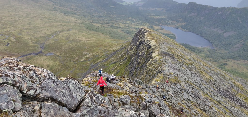 Är vi nu här skall vi springa så långt vi får, vi ger oss av åt andra hållet, upp genom dalen och upp på nästa bergskam. Det blir en ny stenig och lite luftig bergskam på 2 km, men nu var man ju van så det vara bara att klänga sig fram bland blocken.